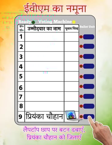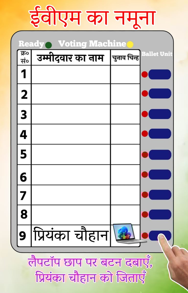 लैपटॉप छाप पर बटन दबाएँ, प्रियंका चौहान को जिताएँ