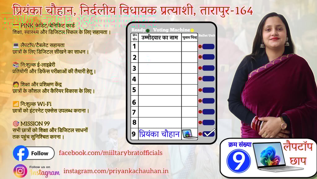 लैपटॉप छाप पर बटन दबाएँ, प्रियंका चौहान को जिताएँ