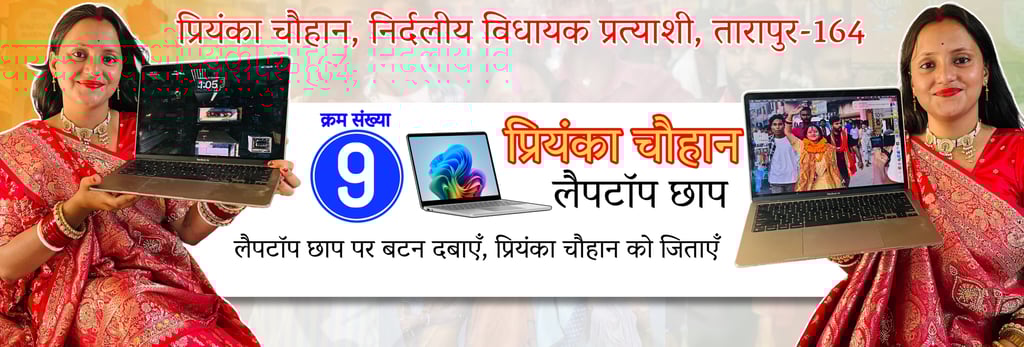 लैपटॉप छाप पर बटन दबाएँ, प्रियंका चौहान को जिताएँ